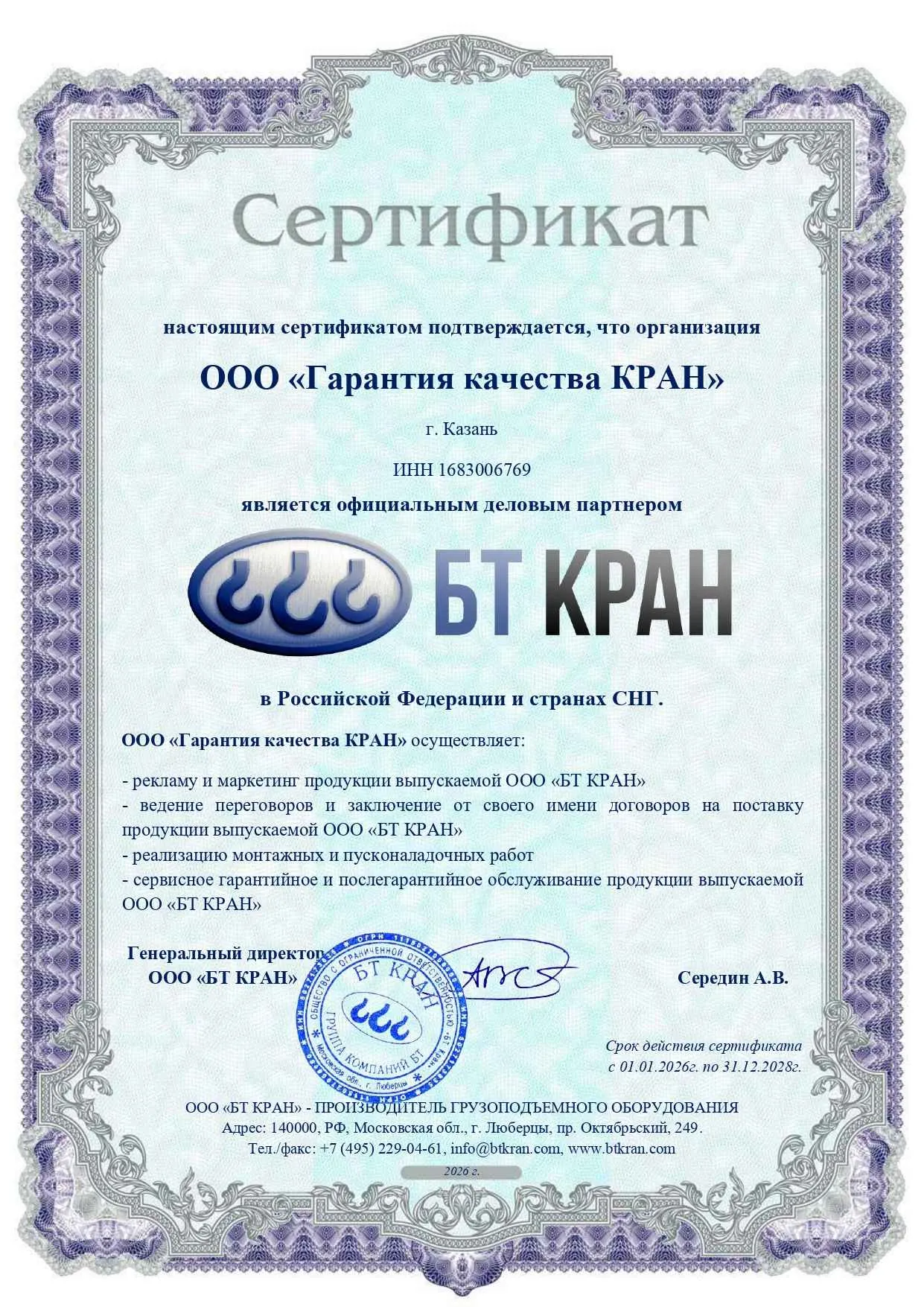 Техническое освидетельствование и обслуживание кранового оборудования, гарантийное и пост-гарантийное обслуживание, пуско-наладочные работы, диагностика общего состояния крана и выявление неисправностей, модернизация;